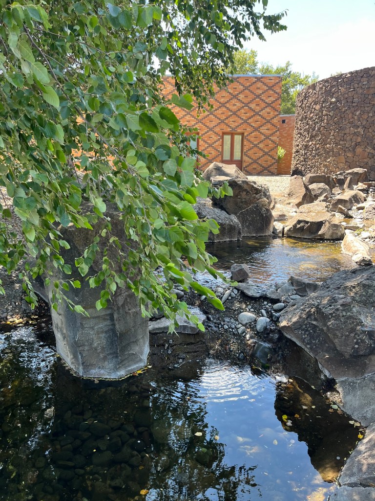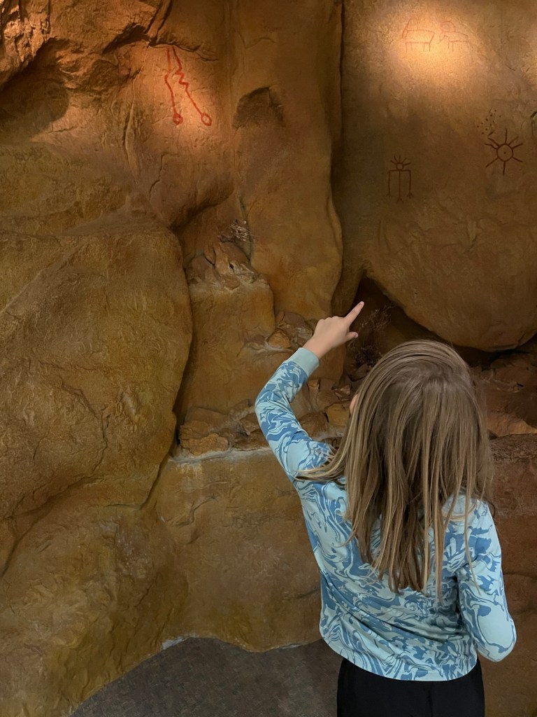 Our main destination was the Warm Springs Reservation and the Museum at Warm Springs. For a Saturday, the museum was surprisingly quiet, giving us the perfect opportunity to explore at our own pace. The building itself was stunning, designed to blend into the natural surroundings with a beautiful water feature, wood beams, and stonework that the kids were sure was a “secret spy entrance.”