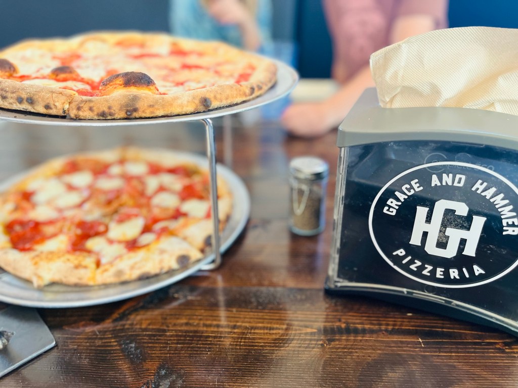 In Redmond, we stumbled upon Grace and Hammer, an early 1912 Presbyterian church turned pizzeria. Walking inside felt like stepping into a beautifully preserved time capsule. The original stained glass windows, vintage lighting, and reclaimed wood tables created a stunning blend of old-world charm and modern dining.