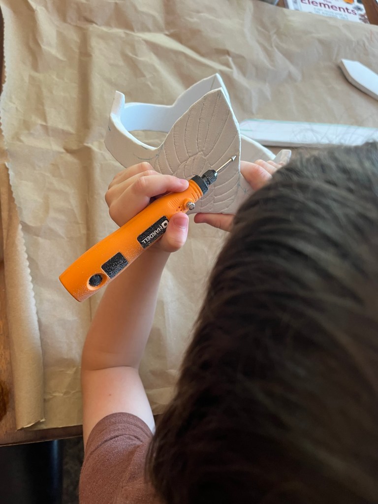 –Helping design, shop for, and carry out home improvement, art, and building projects. A few years ago they built and painted the chicken coop. Currently, we are making props for our halloween costumes.