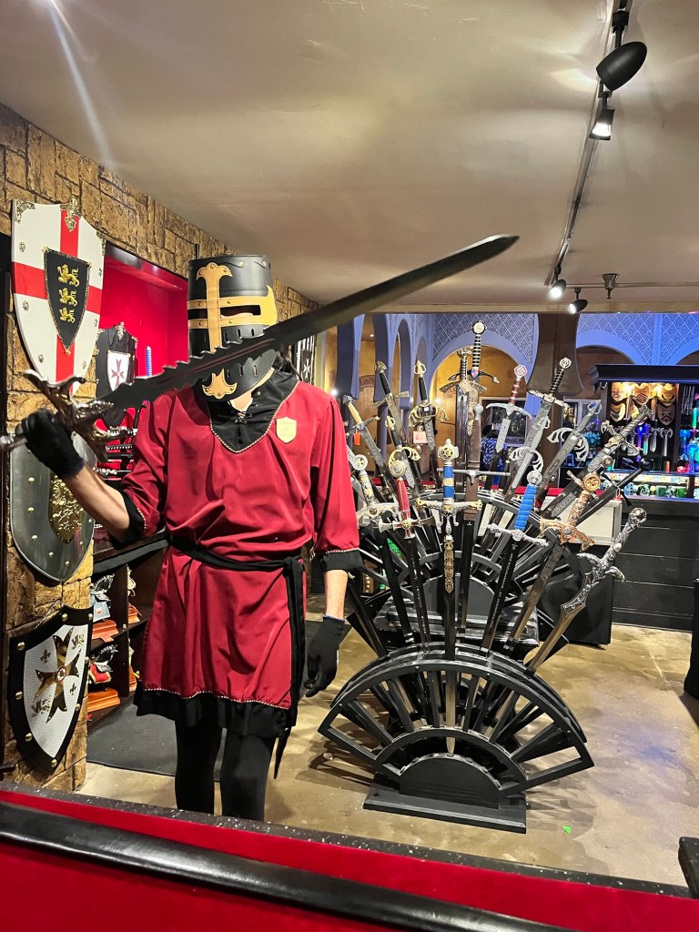 What I loved most was how the show connected with what we’ve been learning at home. We were able to hold real swords (they are incredibly heavy- a weight difficult to accurately estimate!) Medieval Times markets itself as historically accurate, and while it’s packed with entertainment, it also gave our kids a hands-on way to picture what life might have been like centuries ago.