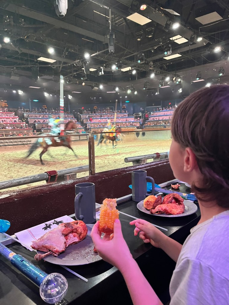 So when we walked into Medieval Times, it felt like stepping straight into the stories we’ve been reading, crafting, and imagining together for years.