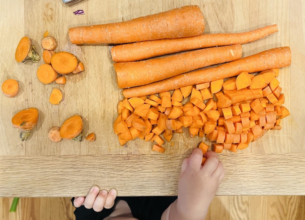 Kids are far more willing to try foods they’ve had a hand in choosing. Even something as simple as picking the “funniest carrot,” the brightest apple, or a new herb to smell gives them ownership of the experience. When they feel involved, their curiosity naturally grows.